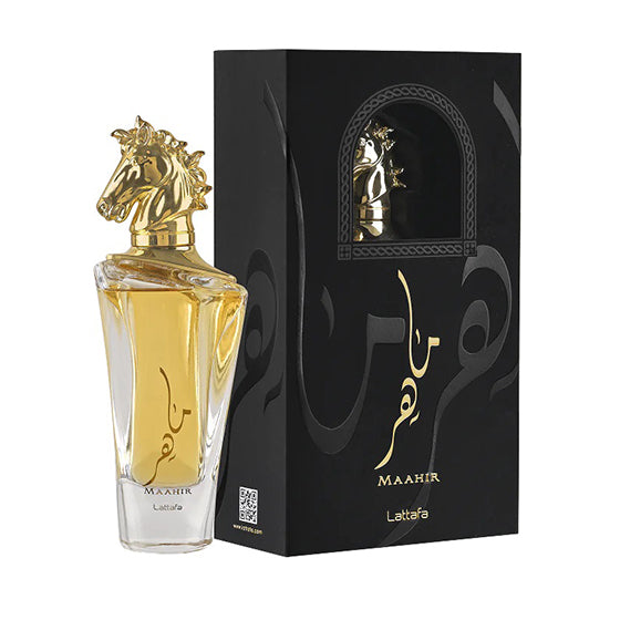 Lattafa Maahir Gold Edition begins with a luminous duet of Saffron and Rose, leading into a heart of Akigalawood, Leather and Dry Amber. At the base, a sumptuous blend of Oud Mood Accord, Vanilla and Musk creates a creamy, long-lasting allure that lingers like a golden memory.