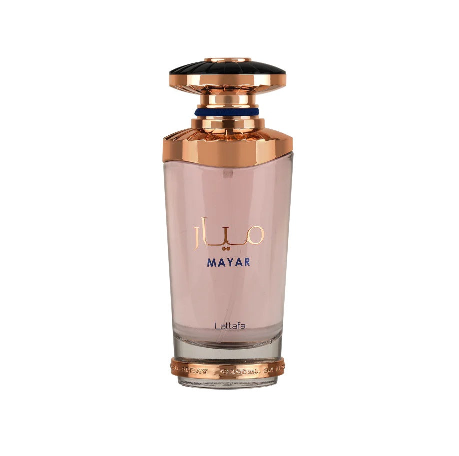 Lattafa Mayar opens with a vibrant burst of Raspberry, Litchi and Violet Leaf, creating a fruity freshness that instantly delights. At the heart, a bouquet of Peony, White Rose and Jasmine blooms with softness and femininity. The base of Musk and Vanilla lingers gently, adding warmth and depth to the fragrance’s airy elegance.